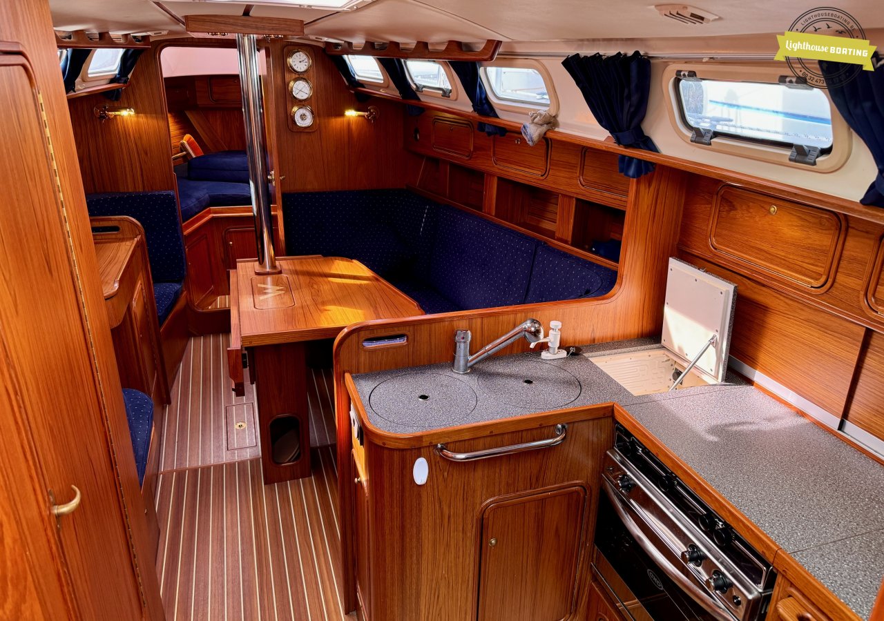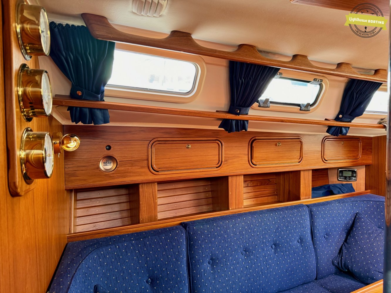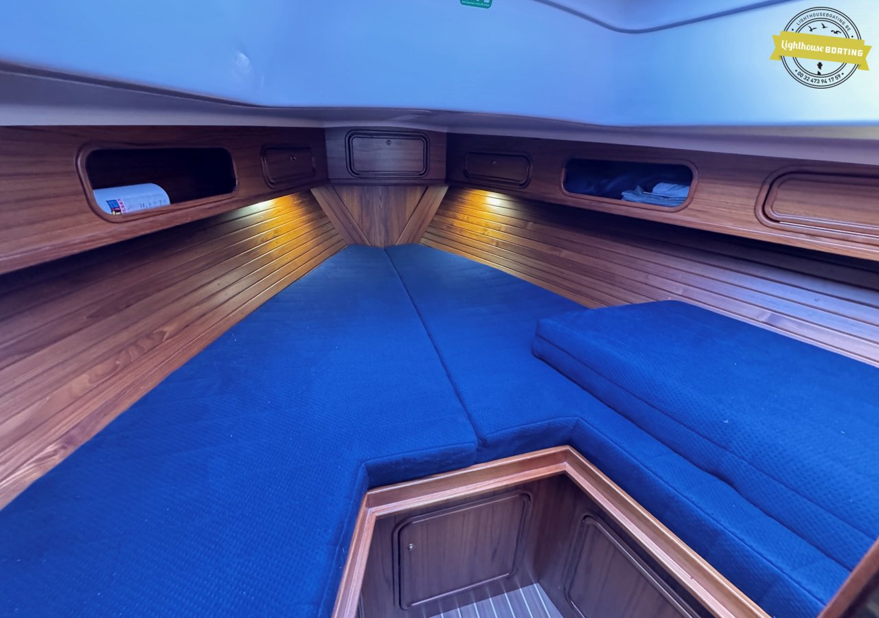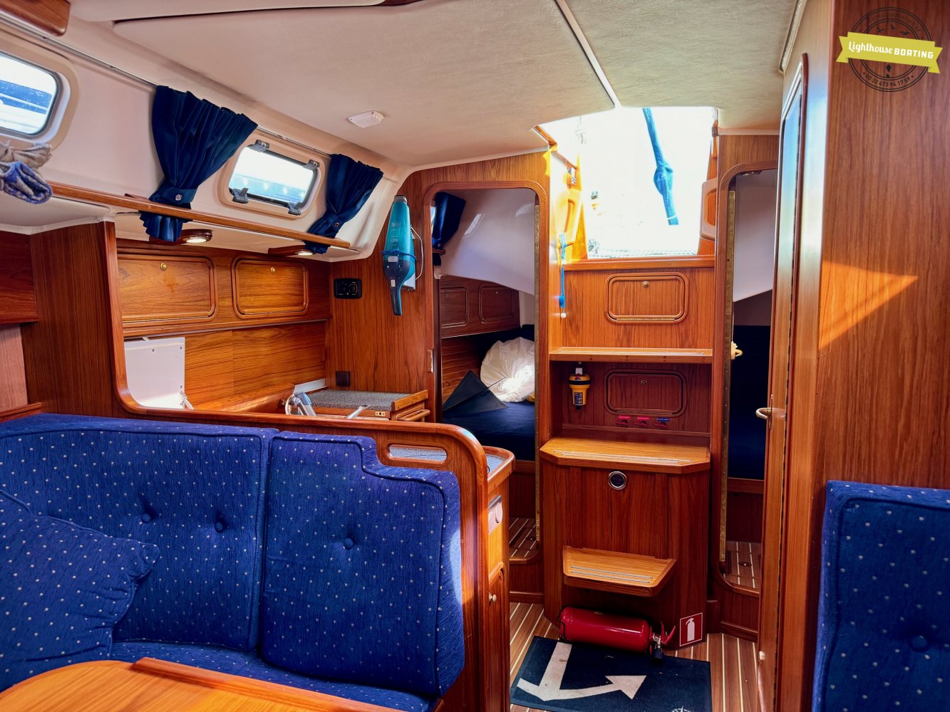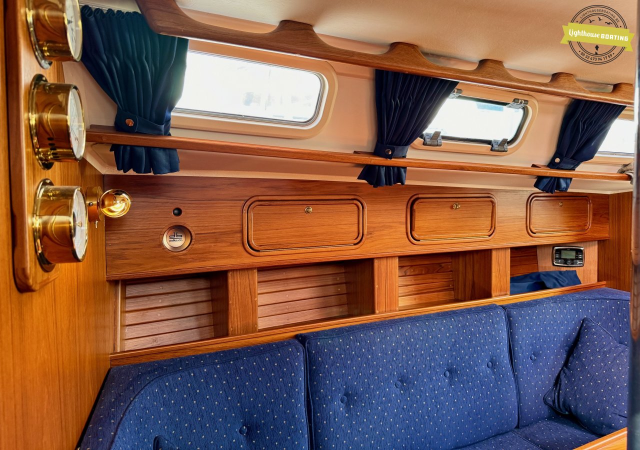 With its long keel and well-balanced rig, the **Marieholm 33** is praised for its calm and stable sailing performance. The boat is easy to handle, even in rough conditions, and offers a fine balance between speed and comfort. The self-tacking jib makes tacking effortless, even for solo sailors. This vessel is ideal for both short coastal trips and longer, more adventurous offshore journeys. The combination of various sails, including a roomy gennaker, allows for optimal performance under different weather conditions.