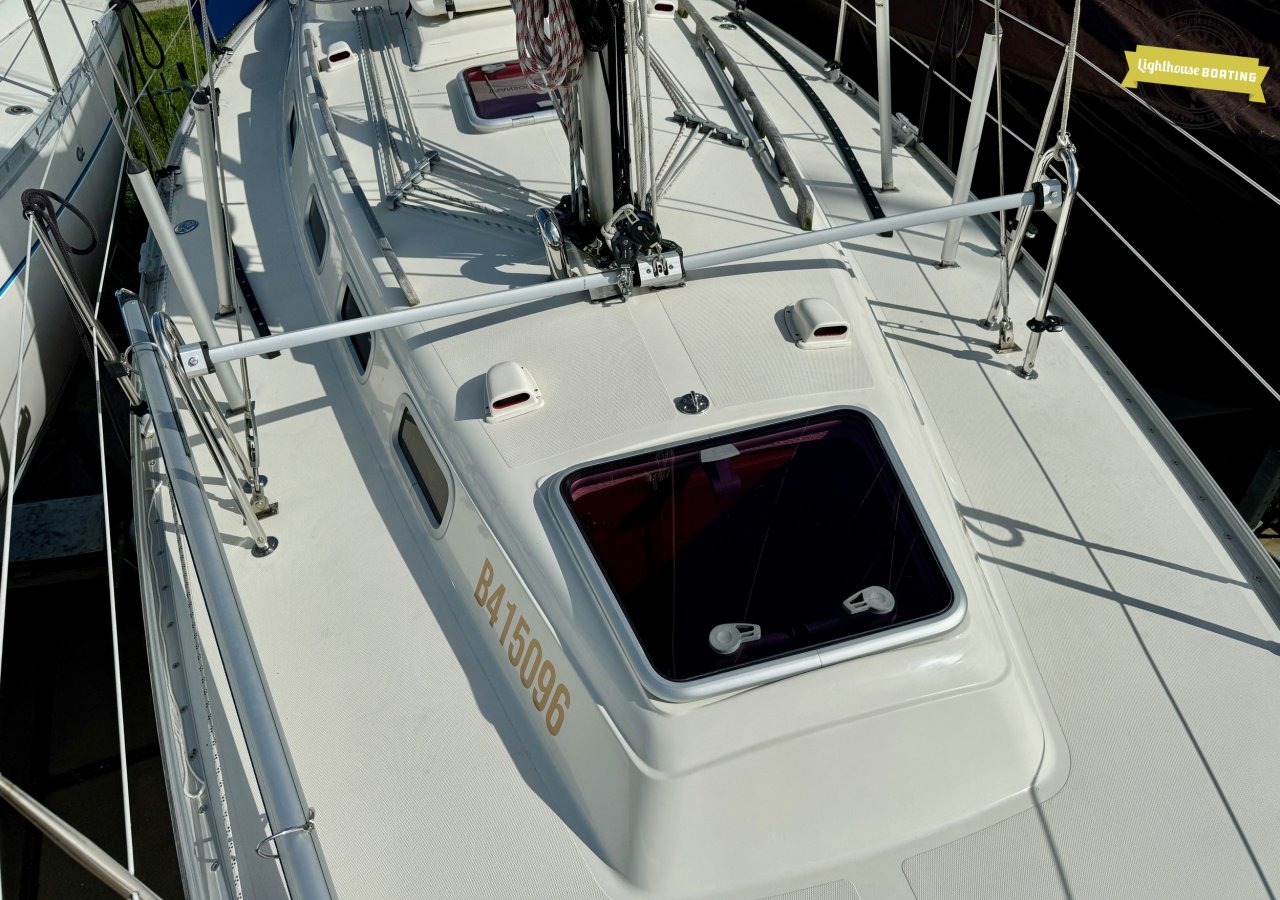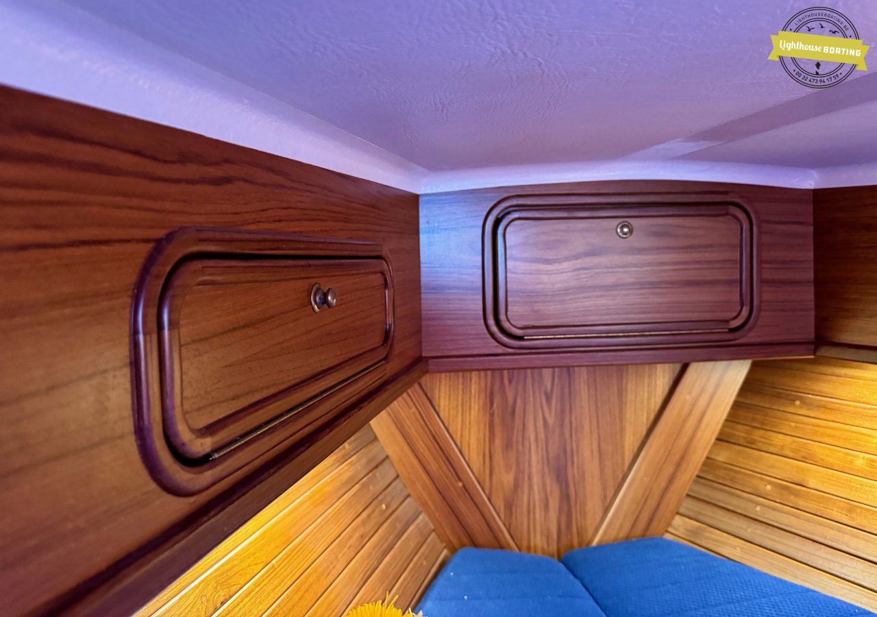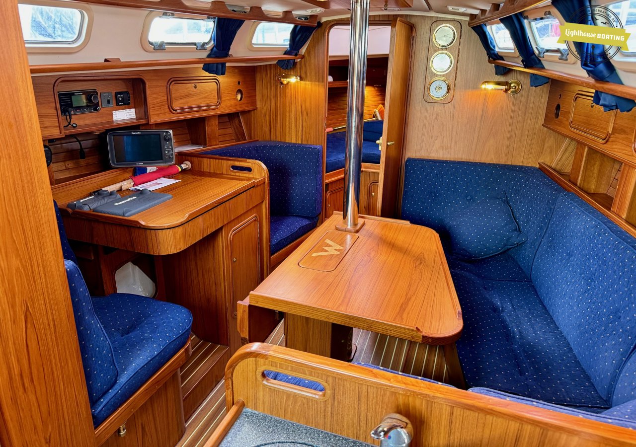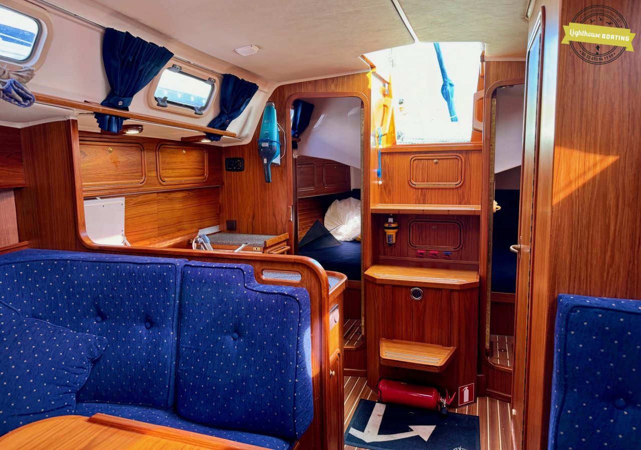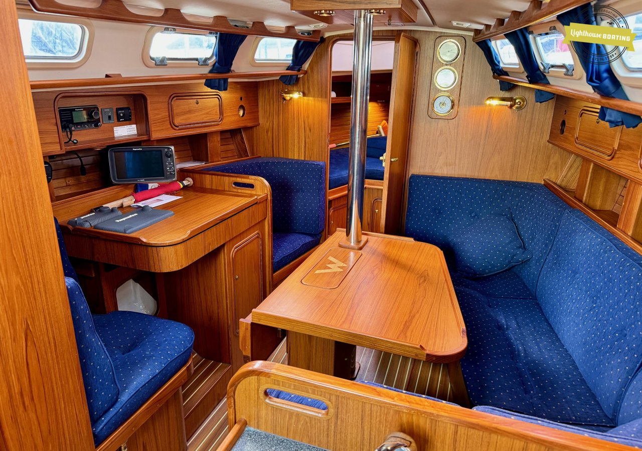 With its long keel and well-balanced rig, the **Marieholm 33** is praised for its calm and stable sailing performance. The boat is easy to handle, even in rough conditions, and offers a fine balance between speed and comfort. The self-tacking jib makes tacking effortless, even for solo sailors. This vessel is ideal for both short coastal trips and longer, more adventurous offshore journeys. The combination of various sails, including a roomy gennaker, allows for optimal performance under different weather conditions.