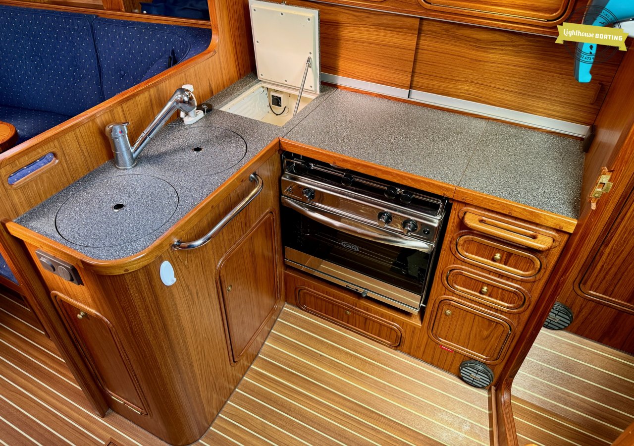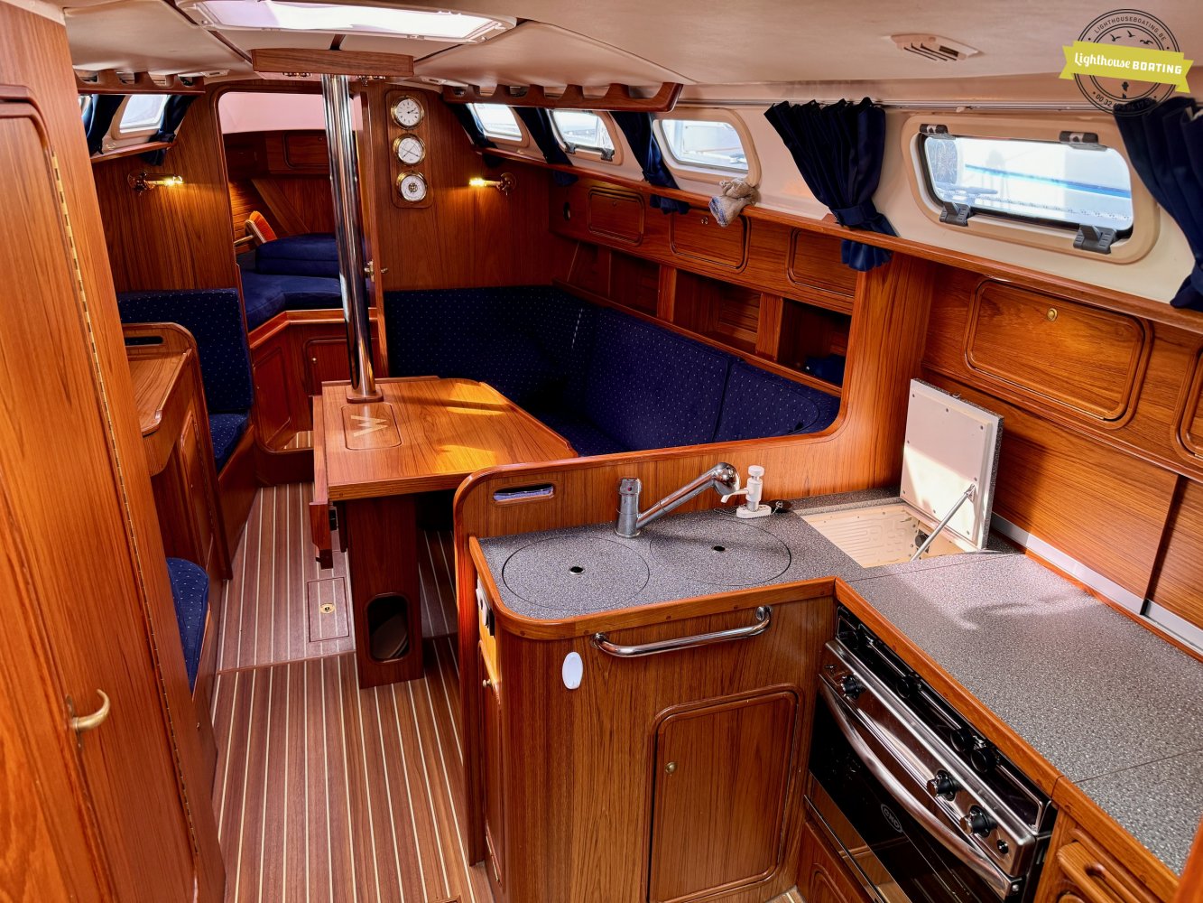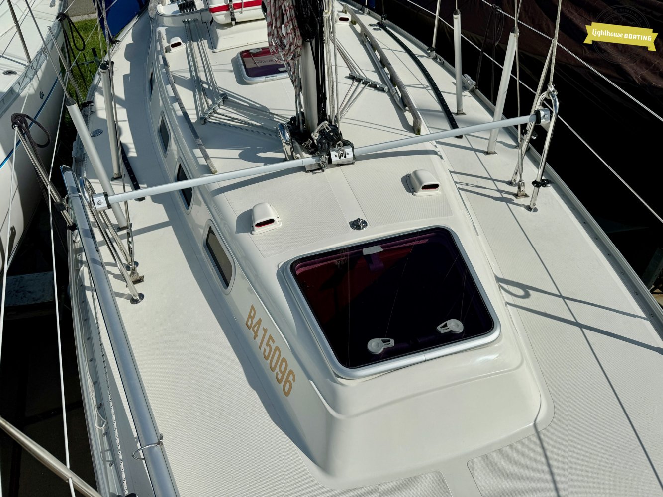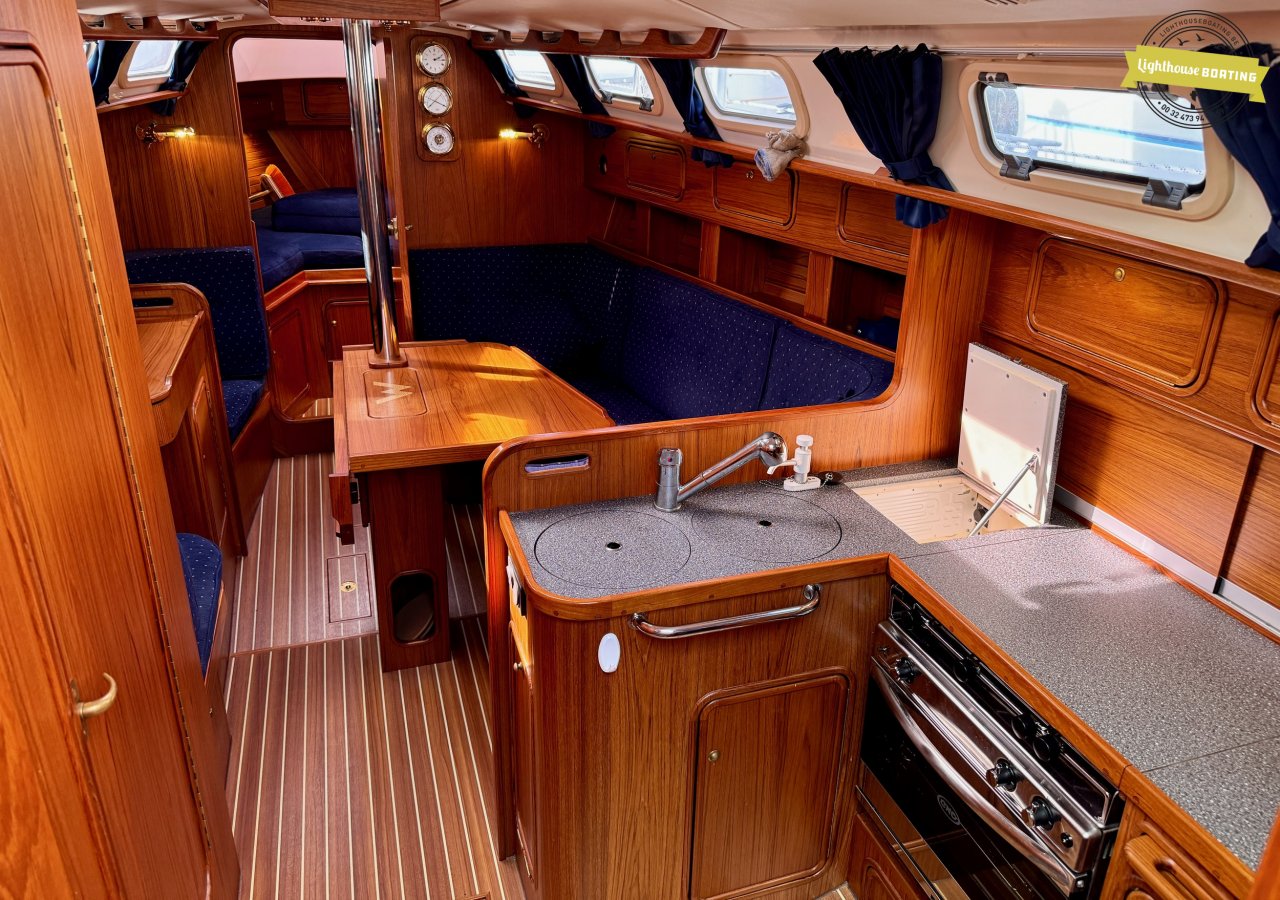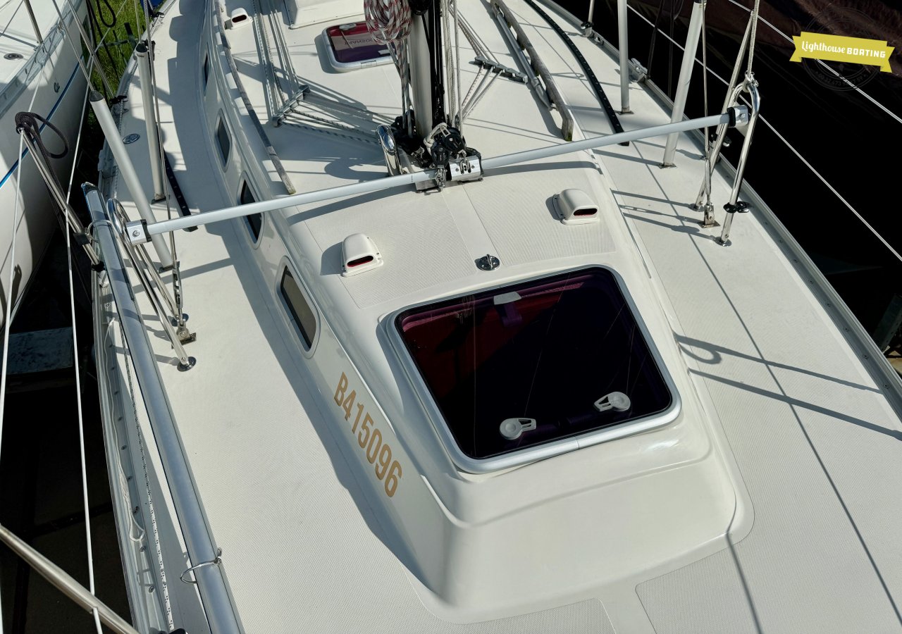 With its long keel and well-balanced rig, the **Marieholm 33** is praised for its calm and stable sailing performance. The boat is easy to handle, even in rough conditions, and offers a fine balance between speed and comfort. The self-tacking jib makes tacking effortless, even for solo sailors. This vessel is ideal for both short coastal trips and longer, more adventurous offshore journeys. The combination of various sails, including a roomy gennaker, allows for optimal performance under different weather conditions.