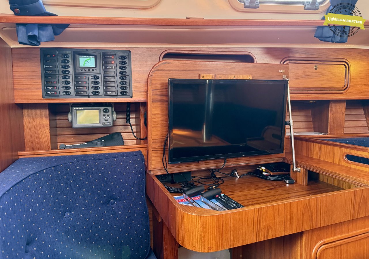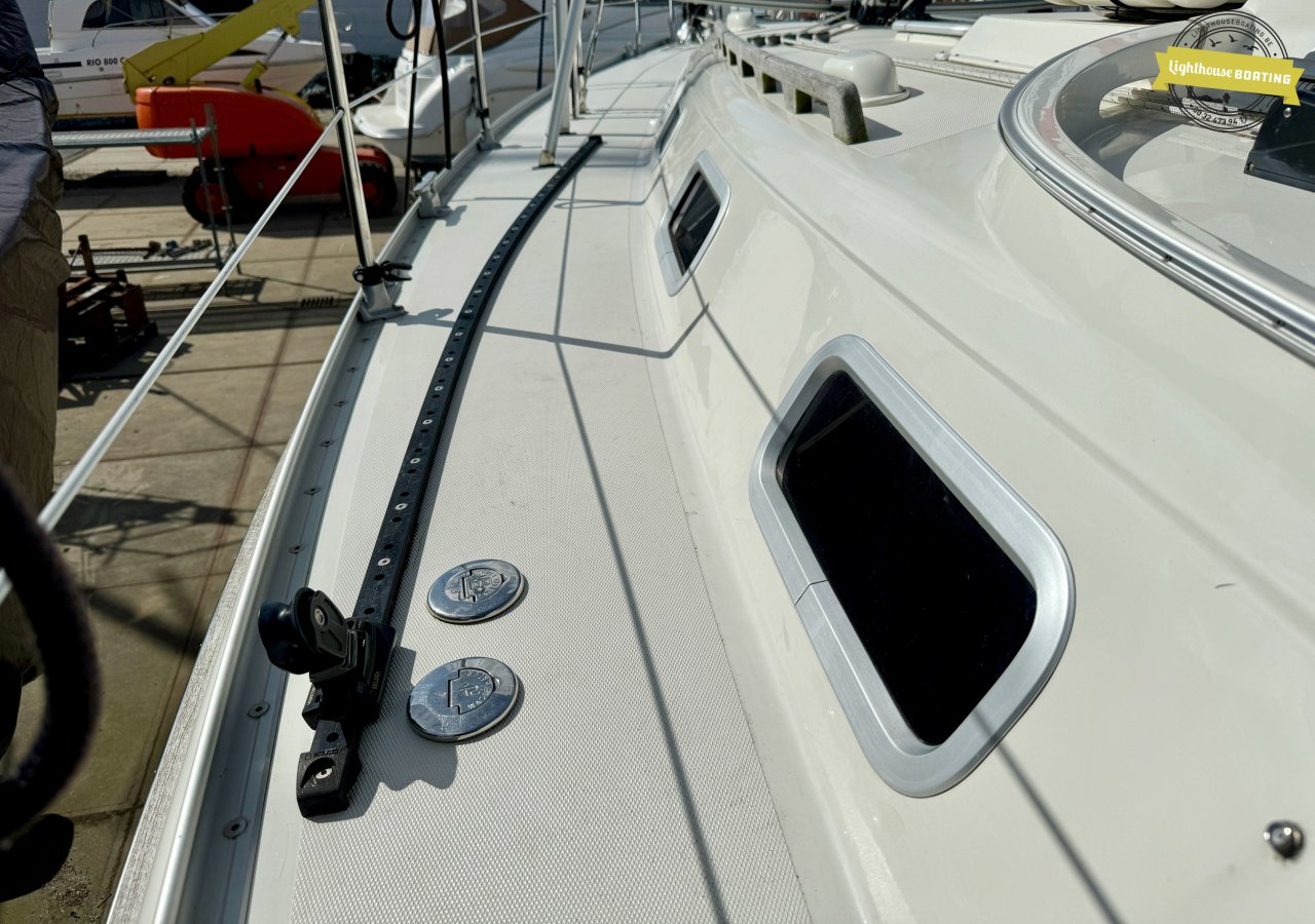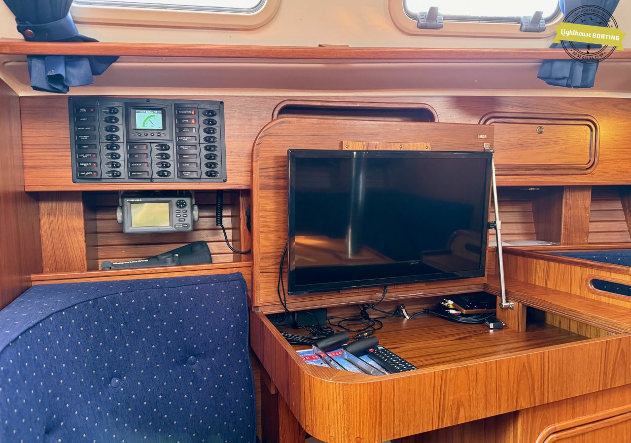 - **Sails in excellent condition**: mainsail, genoa, self-tacking jib, and a spacious gennaker for light wind conditions.