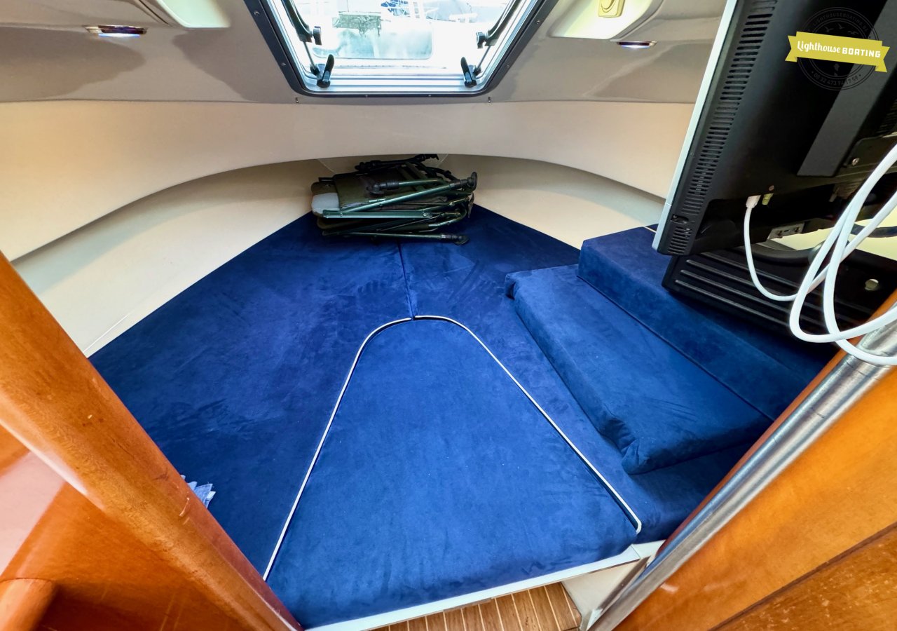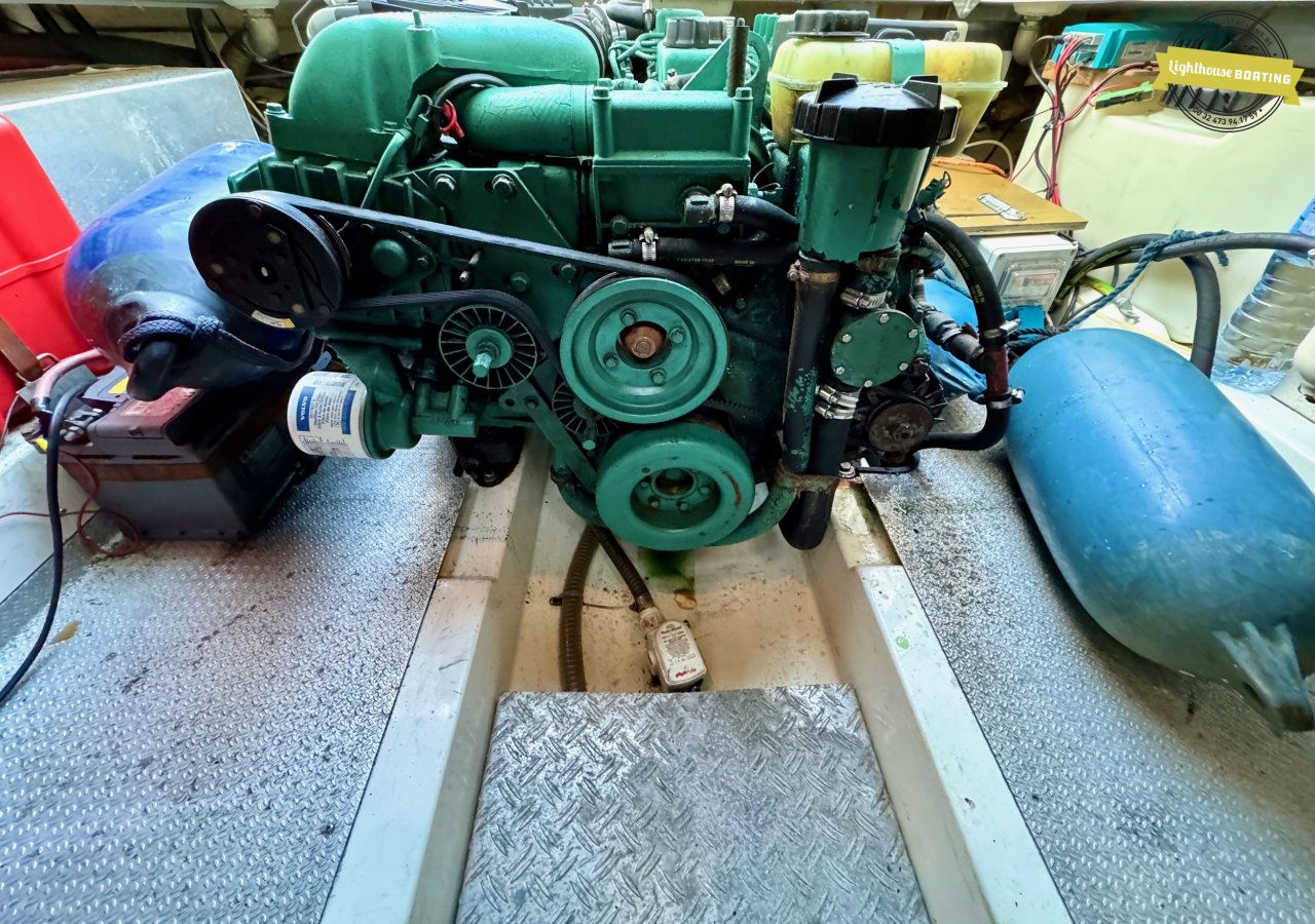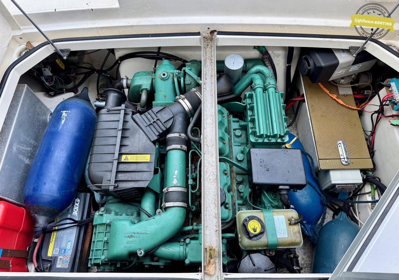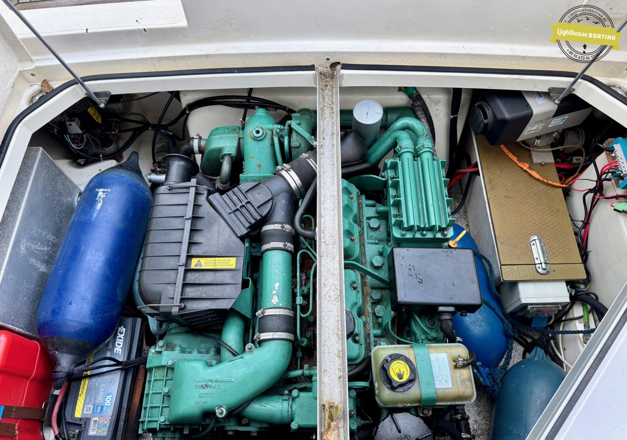 The boat is equipped with a Volvo Penta KAD32 diesel engine delivering 170 hp at 3,800 rpm. This 4-cylinder engine with a supercharger and turbocharger ensures efficient performance and reliable cruising. Propulsion is via a Volvo Penta 290 DPE stern drive with a duo-prop.