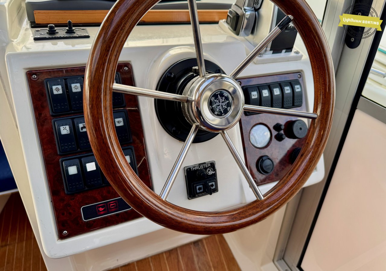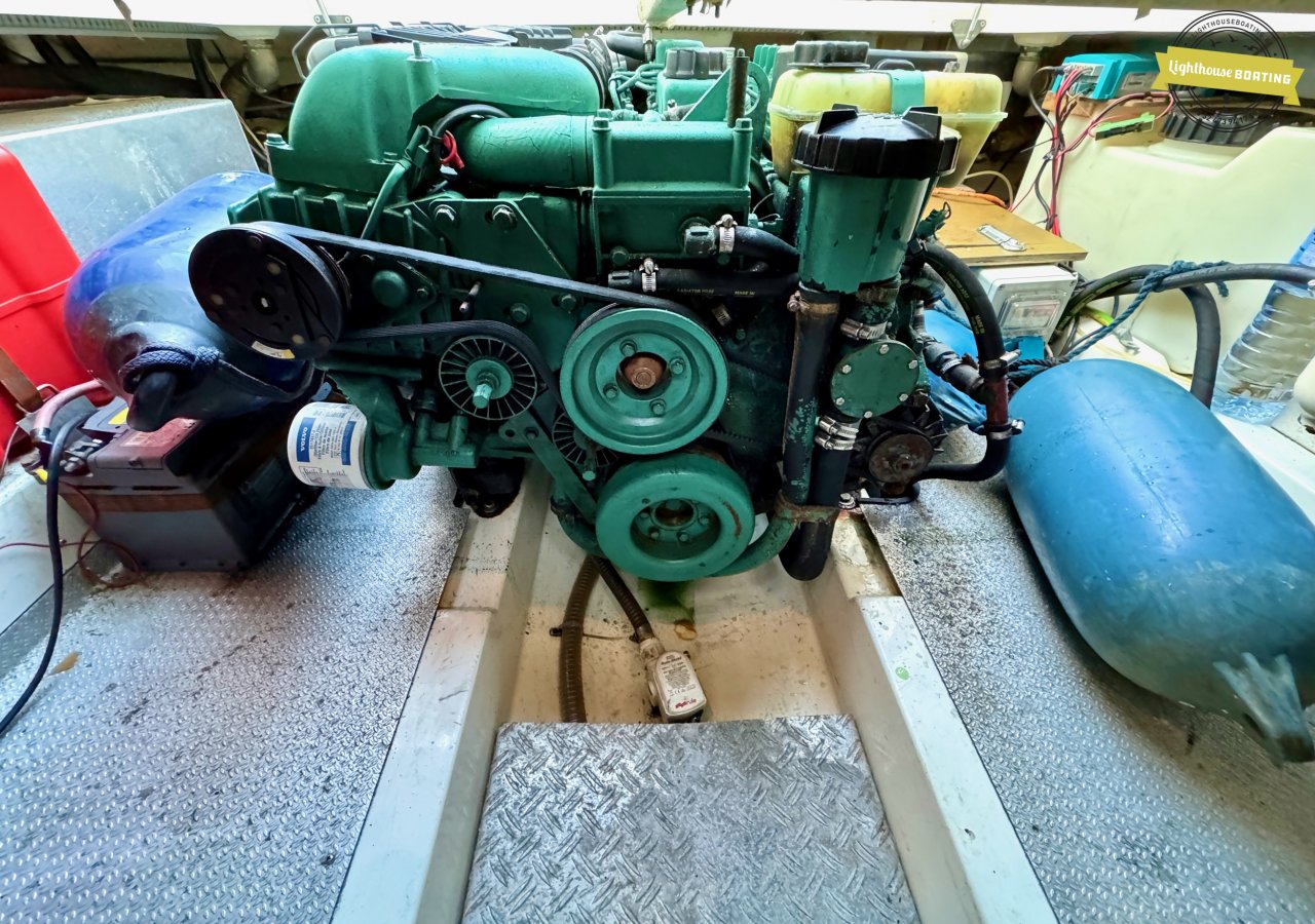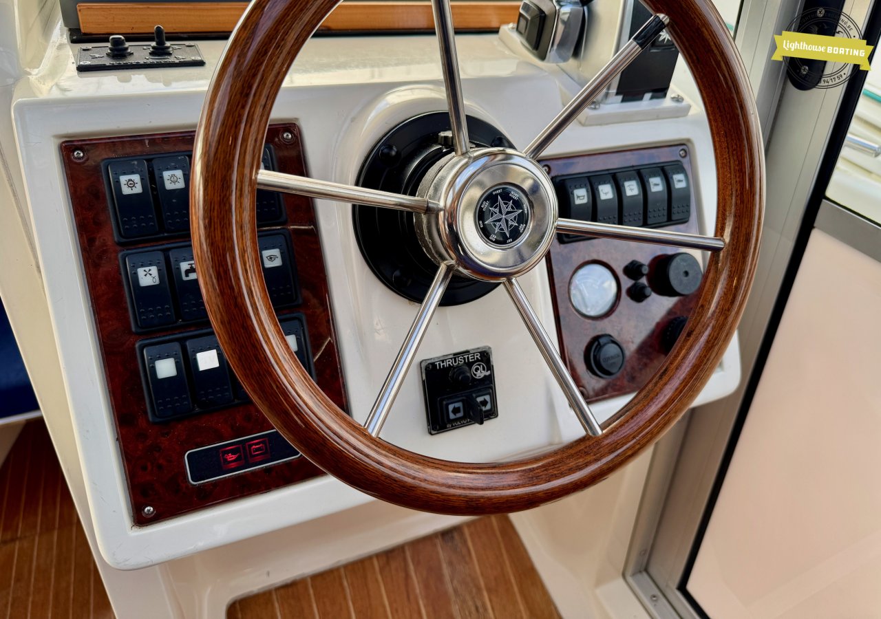 The boat is equipped with a Volvo Penta KAD32 diesel engine delivering 170 hp at 3,800 rpm. This 4-cylinder engine with a supercharger and turbocharger ensures efficient performance and reliable cruising. Propulsion is via a Volvo Penta 290 DPE stern drive with a duo-prop.