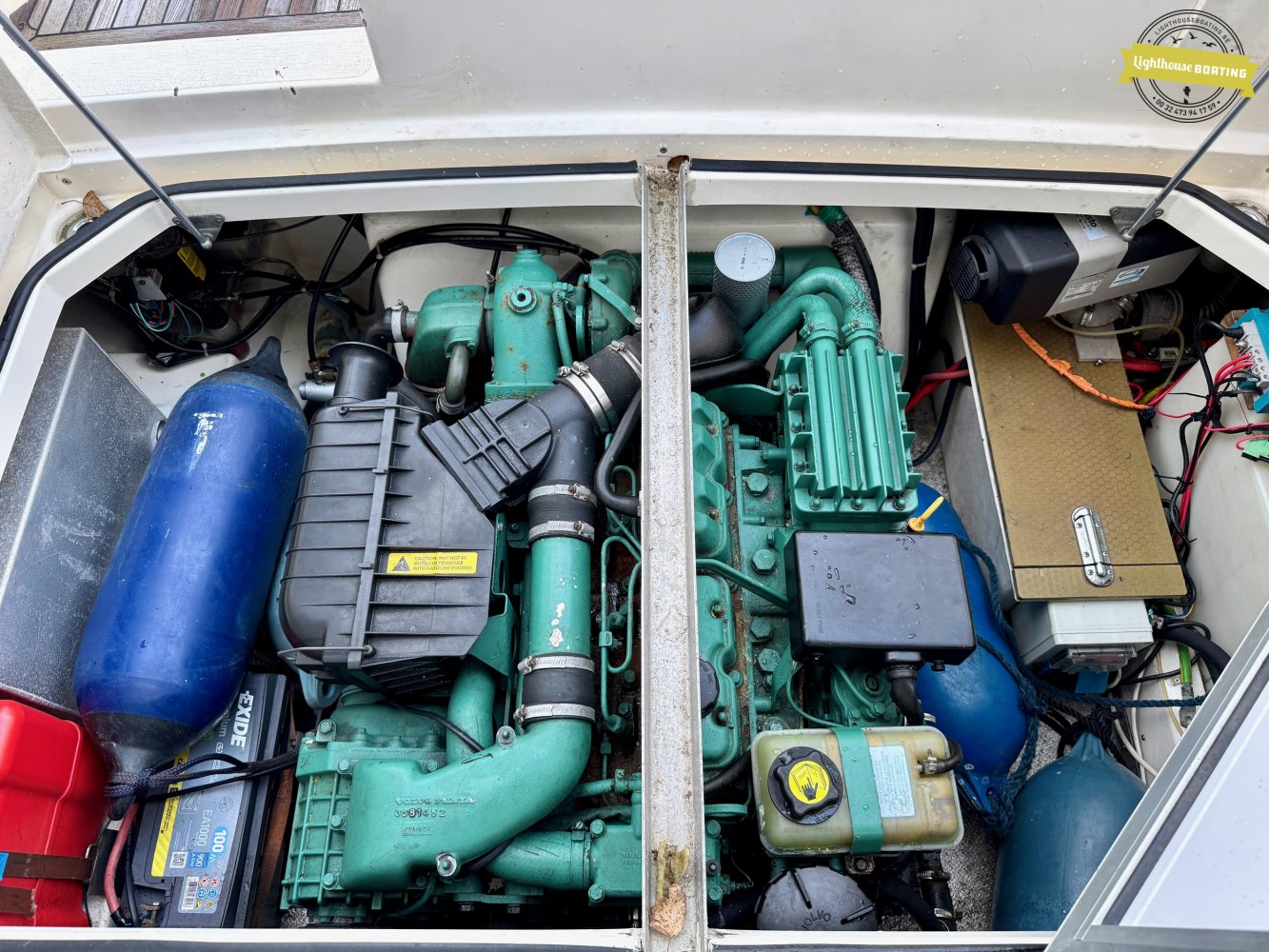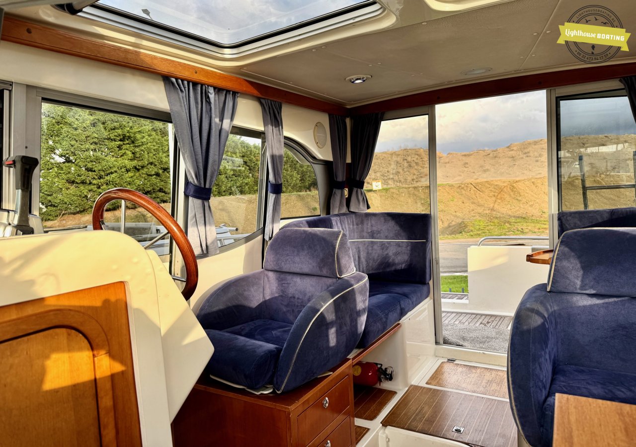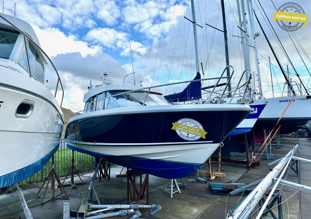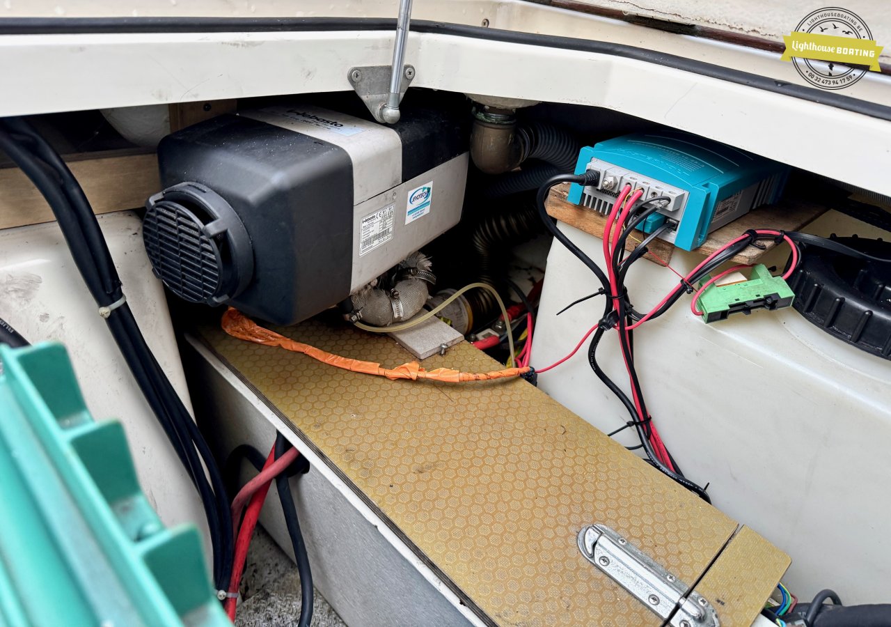 The boat is equipped with a Volvo Penta KAD32 diesel engine delivering 170 hp at 3,800 rpm. This 4-cylinder engine with a supercharger and turbocharger ensures efficient performance and reliable cruising. Propulsion is via a Volvo Penta 290 DPE stern drive with a duo-prop.