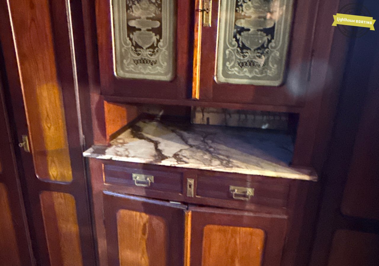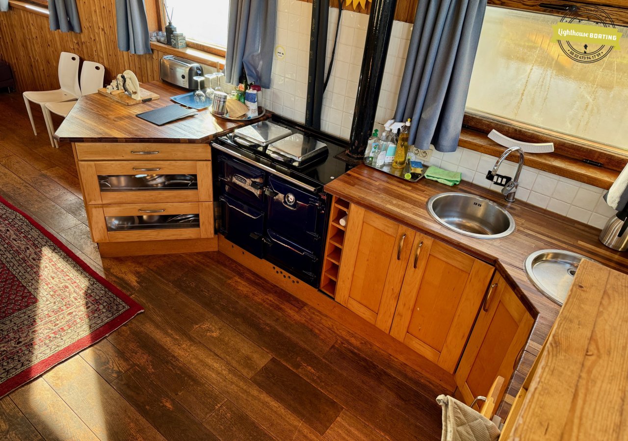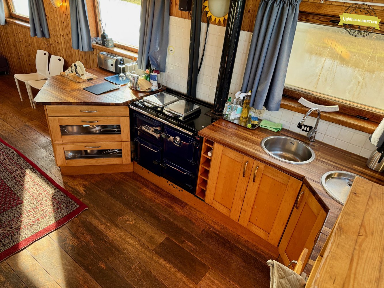 Inside, you will still find the original alcoves where the skipper's family once lived, but modern amenities have been provided in addition. Two bathrooms, two showers and two toilets add to the convenience (in the forecabin there is another toilet, shower and bed that were not counted as not rentable), while the fully equipped kitchen - equipped with a traditional AGA stove, oven and central heating - invites you to socialise. An innovative, biological water purification system has been installed on the upper deck; here, plants such as water mint, woodland strawberry, cattail and catnip provide an eco-friendly system that contributes to water purity. In addition, solar panels on the roof provide the energy needed for hot water and electricity.