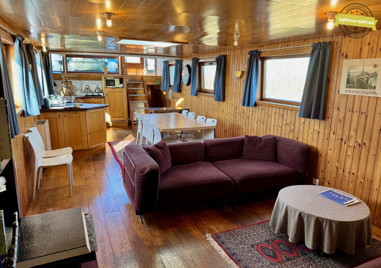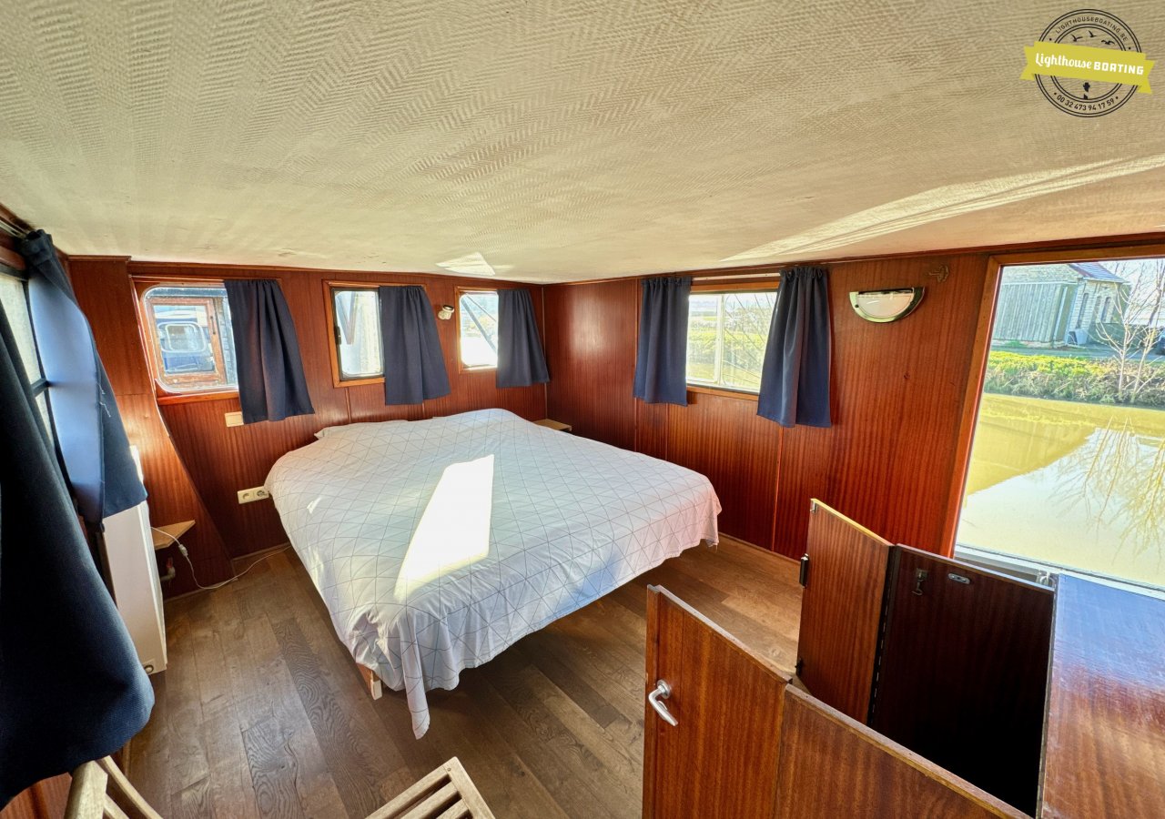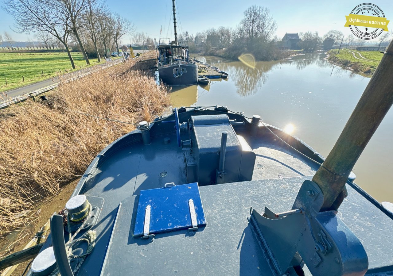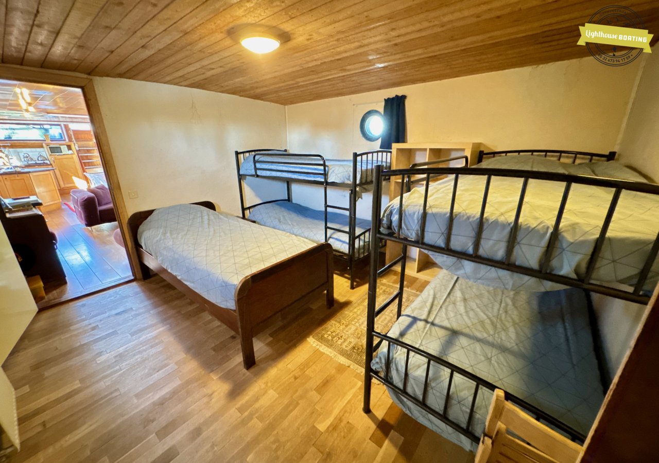 The St-Antoine is an unusual houseboat with a distinctly nautical character. Originally a cargo ship from 1929, it has been converted into an atmospheric accommodation for nine people. The exterior - with its pointed, characteristic ‘ tip’ reminiscent of the robust lines of the original - bears witness to its rich maritime history, while the interior offers a pleasant mix of authentic elements and contemporary comfort.
