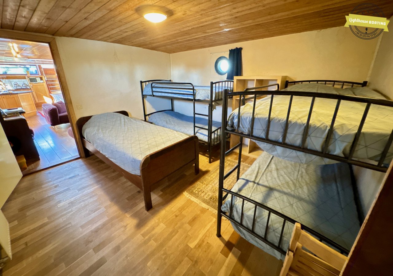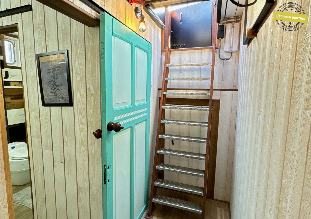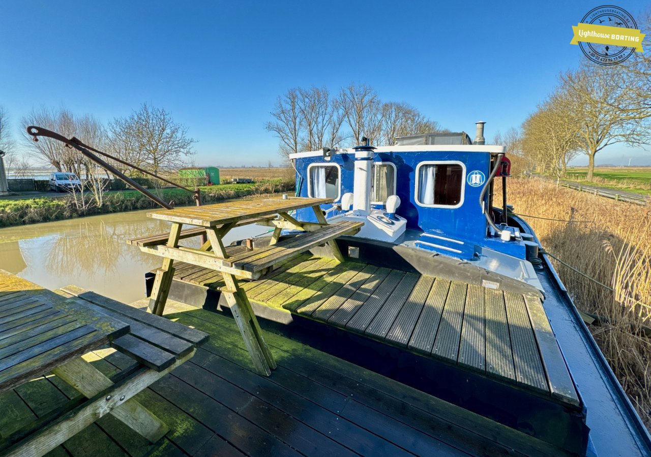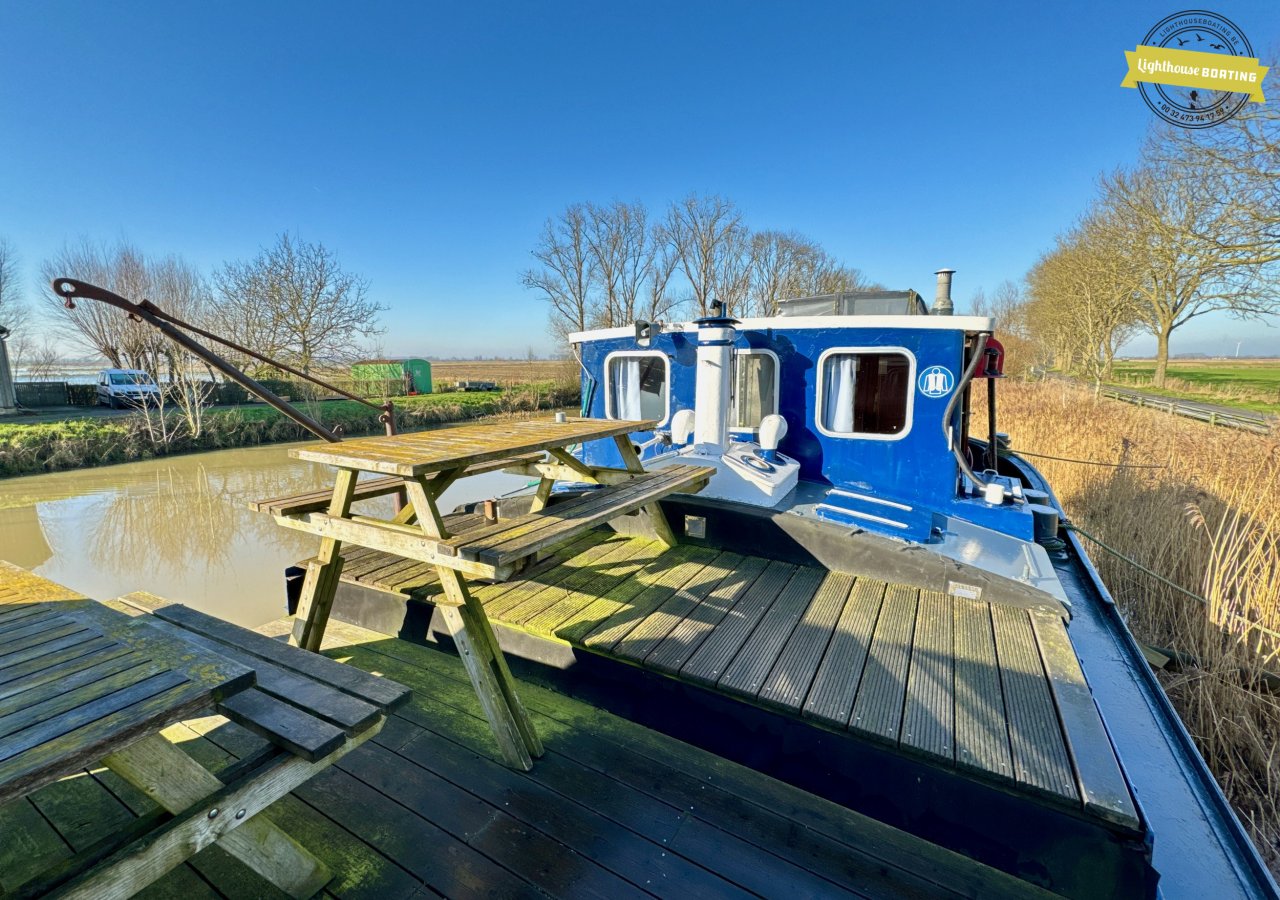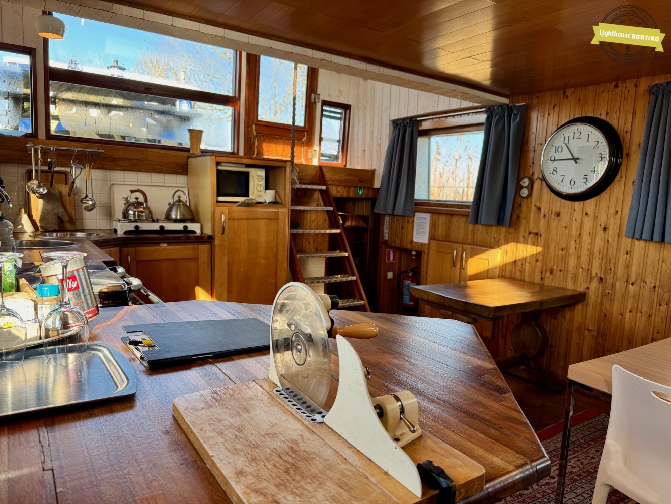 The St-Antoine is an unusual houseboat with a distinctly nautical character. Originally a cargo ship from 1929, it has been converted into an atmospheric accommodation for nine people. The exterior - with its pointed, characteristic ‘ tip’ reminiscent of the robust lines of the original - bears witness to its rich maritime history, while the interior offers a pleasant mix of authentic elements and contemporary comfort.