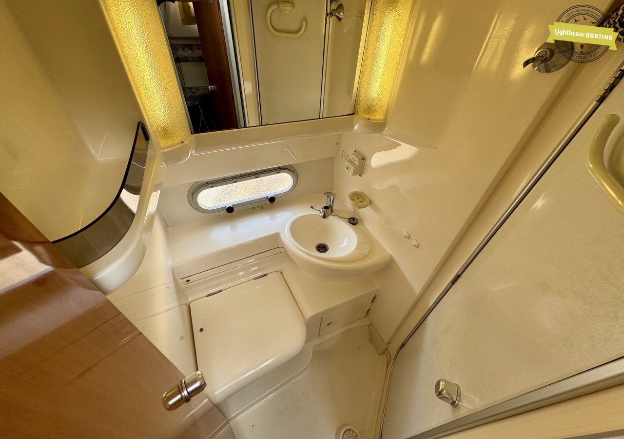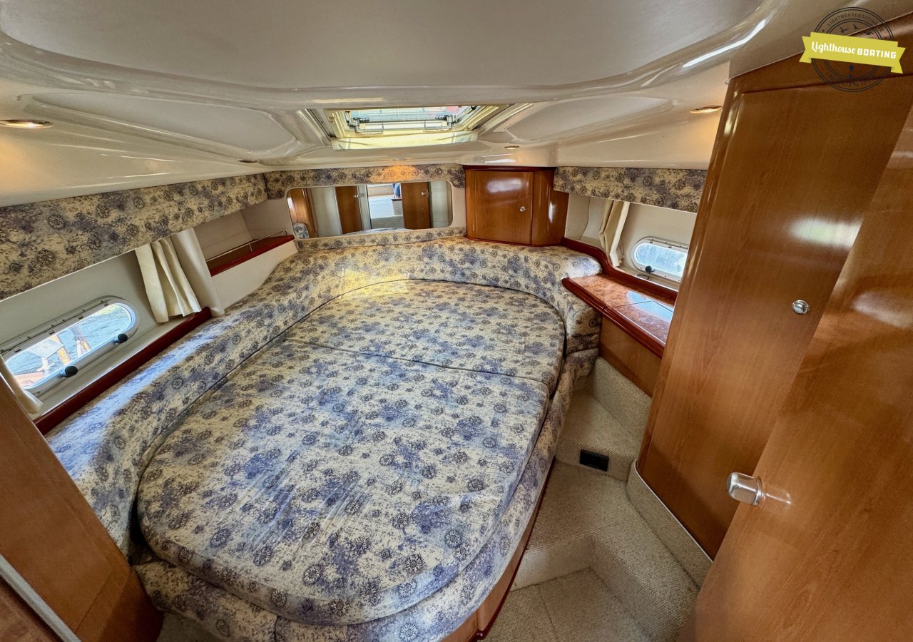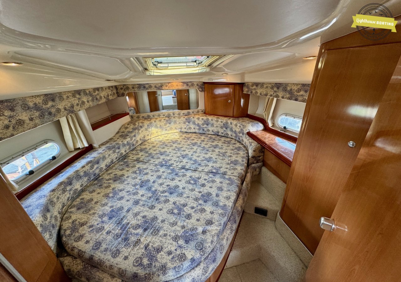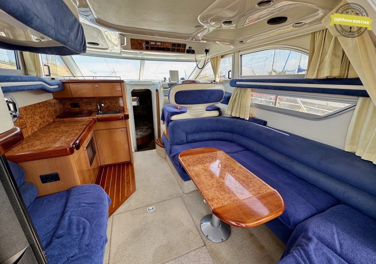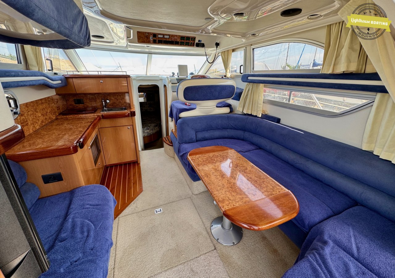 Spacious Dimensions: With a length of 10.5 meters and a beam of 3.35 meters, the Sealine F33 offers generous living space. The headroom is 1.85 meters. Â