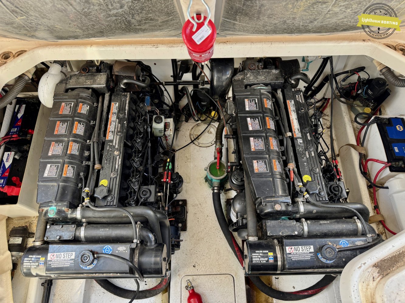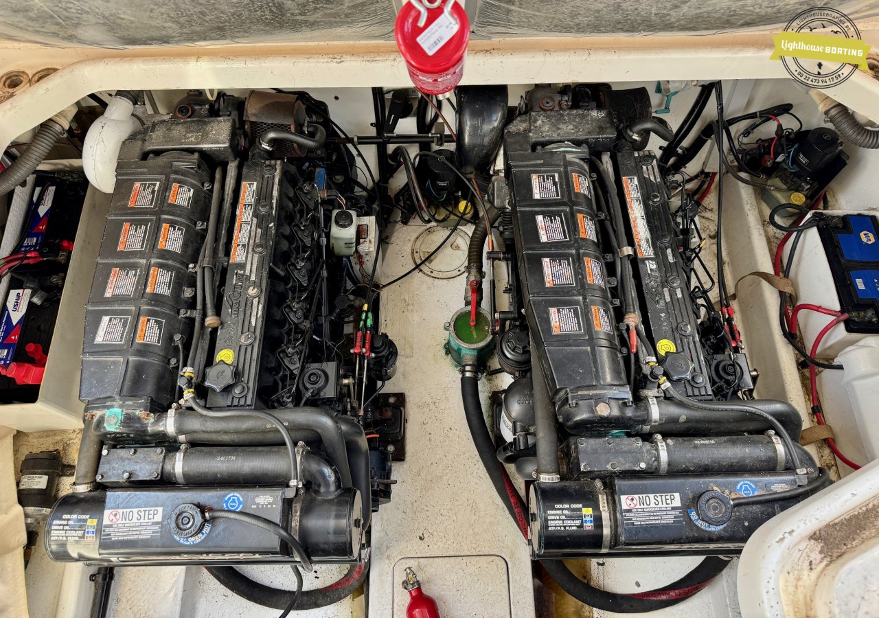 Powerful Engines: Twin Mercruiser D4.2L engines, each delivering 220 HP, ensure a smooth and powerful ride. The engines have approximately 560 hours. Â