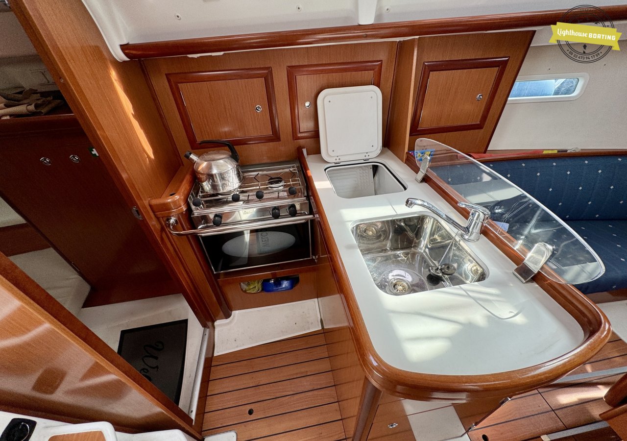 The Beneteau Oceanis 323 is a very user-friendly yacht, suitable for both short trips and longer journeys. It performs well in light winds and is easy to maneuver in the harbor thanks to the 21 hp Yanmar 3YM20 diesel engine.