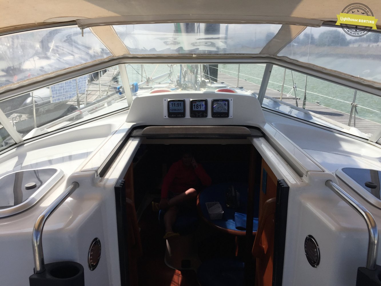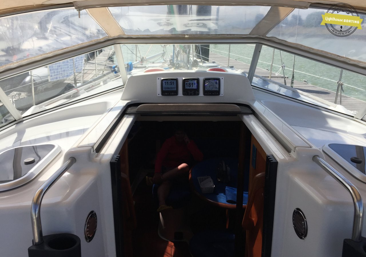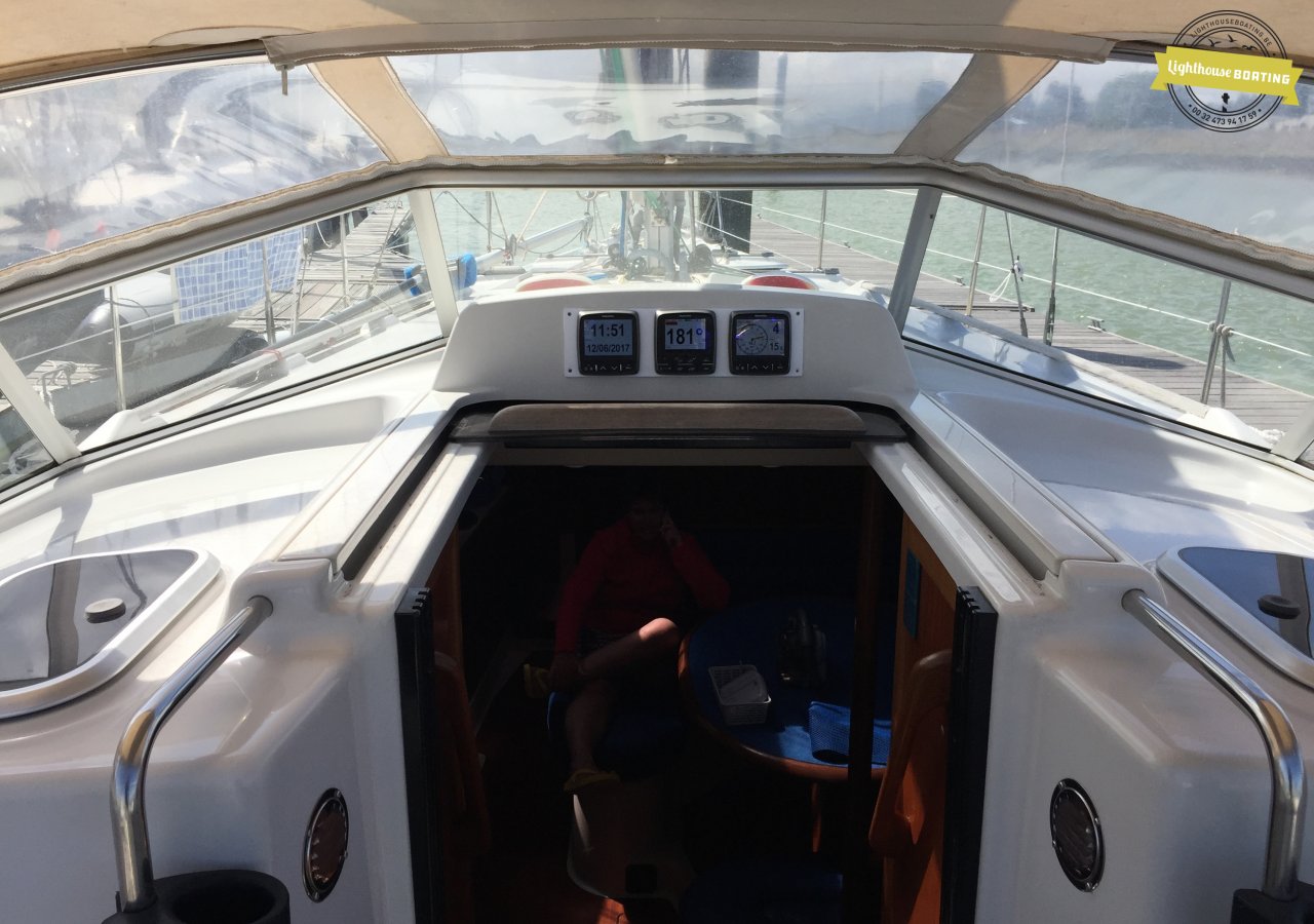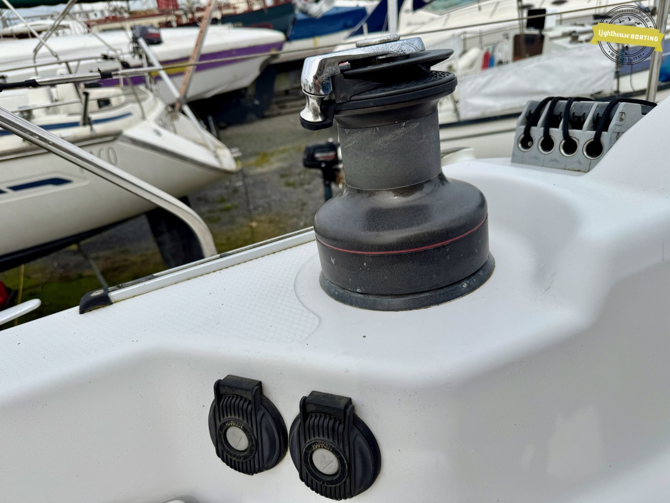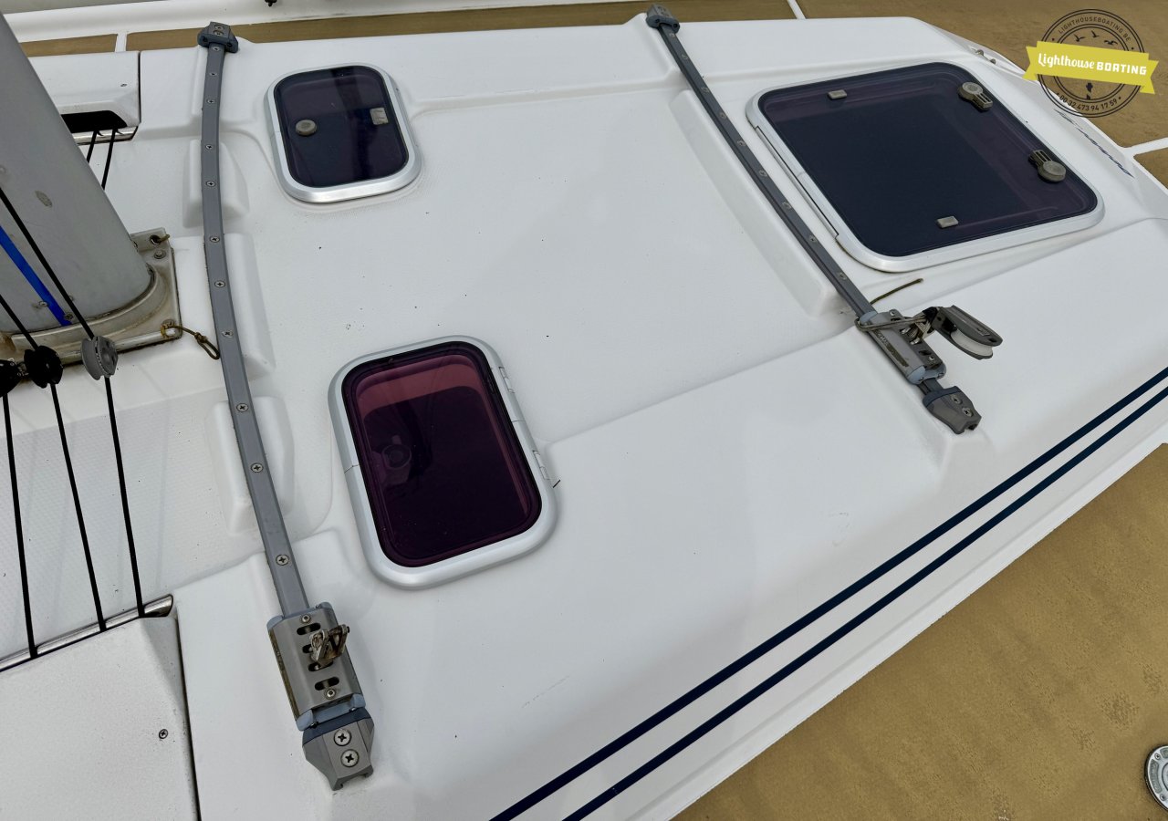 Hull and Construction: The hull is a white round-bilge GRP (polyester) construction. Notably, the hull was stripped and re-treated with epoxy in 2021. It features a fixed lead keel with a draught of 1.95 meters.