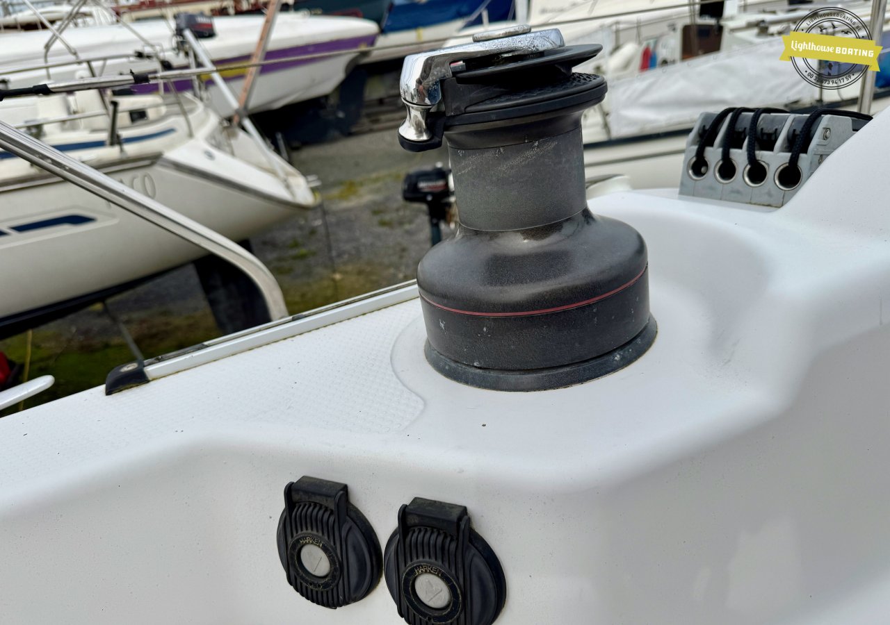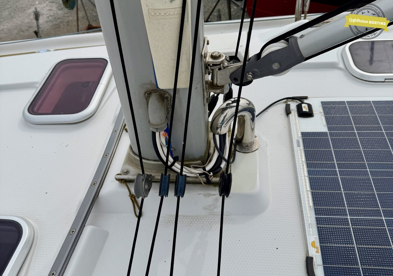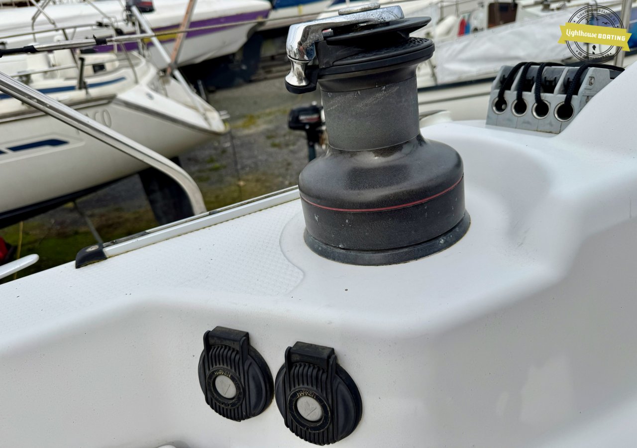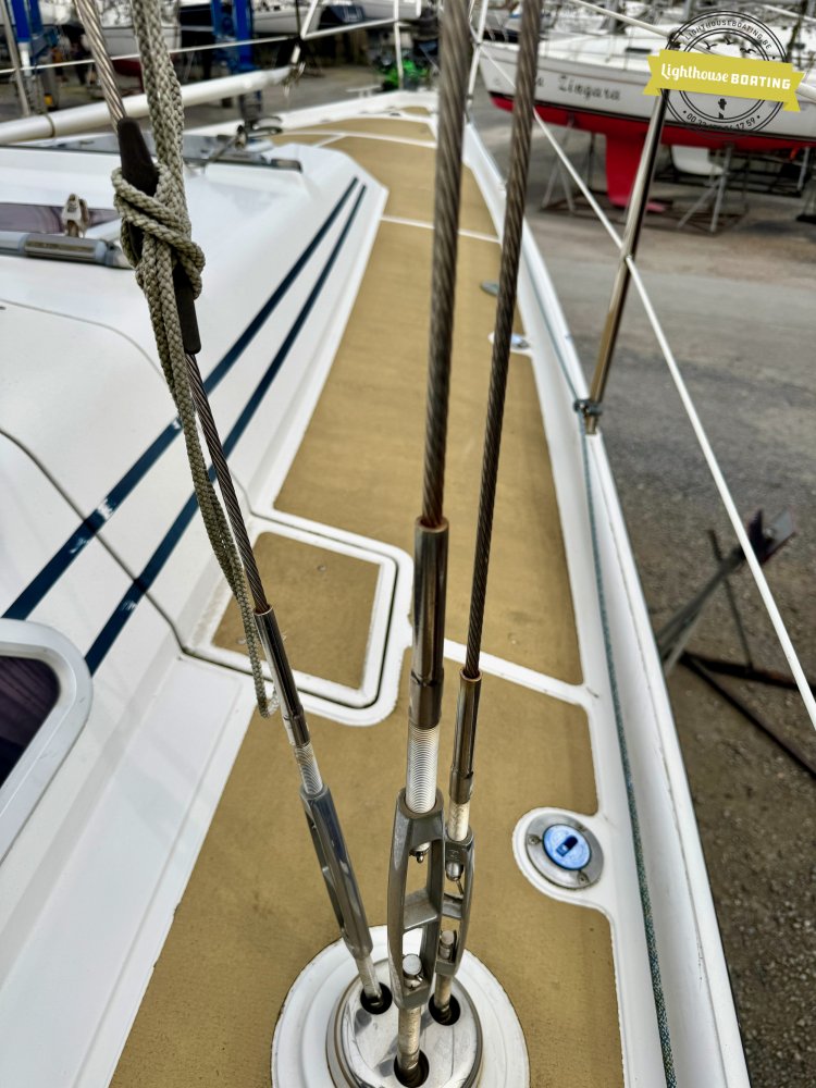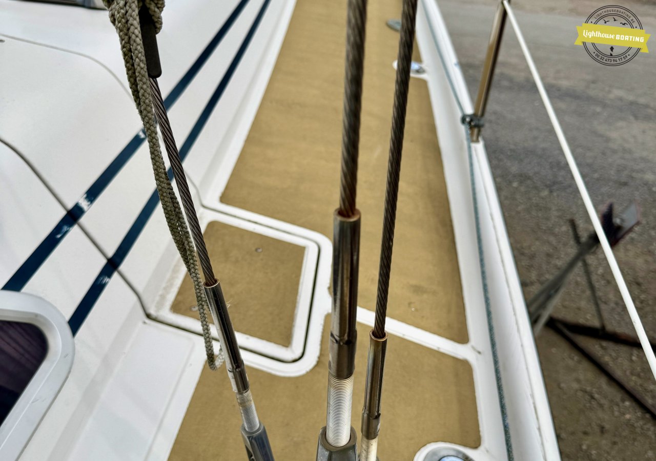 Upgrades: The standing rigging was renewed using Dyform. Additionally, the deck hardware was modernized with updated blocks (2023) from Harken Black Magic and Lewmar.