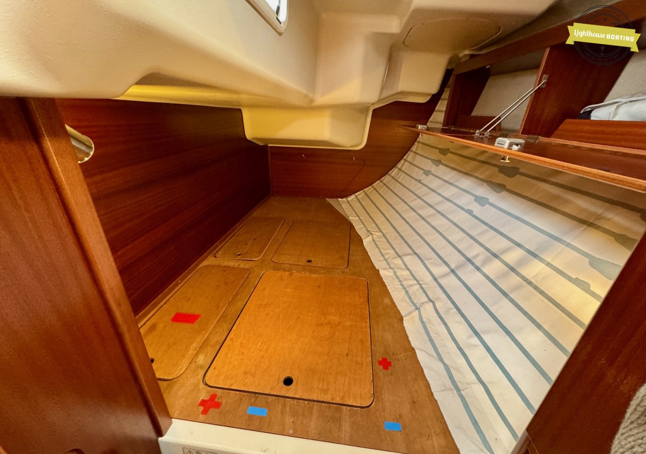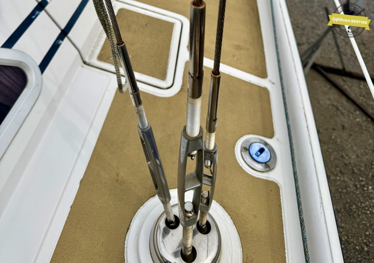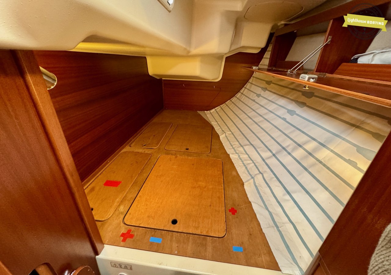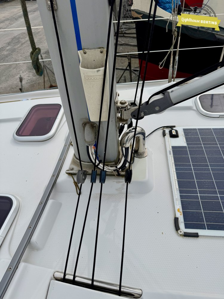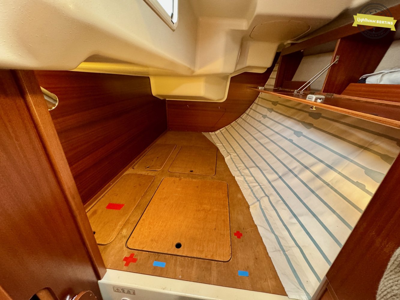 Upgrades: The standing rigging was renewed using Dyform. Additionally, the deck hardware was modernized with updated blocks (2023) from Harken Black Magic and Lewmar.