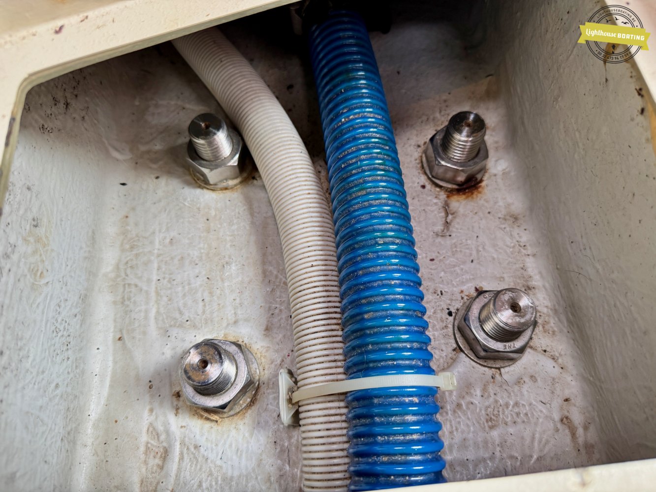Power Supply: New batteries were installed in 2025, including a 74 Ah starter battery and two 196 Ah service batteries. A solar panel with a charge controller provides sustainable power.