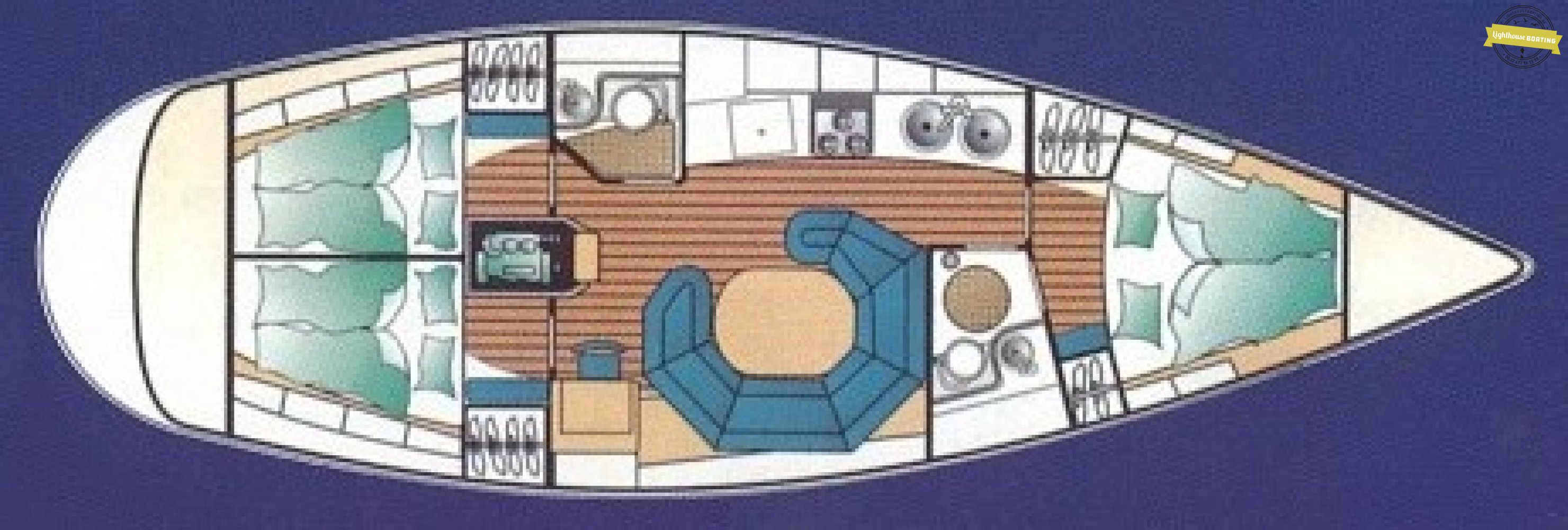 Layout: The yacht offers 3 cabins with a total of 6 fixed berths.